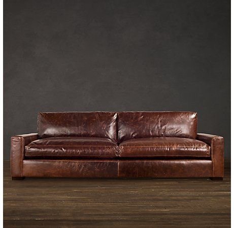 Upholstered in premium full-grain leather, it showcases a rich, natural texture that develops character over time. The generously padded seat and supportive back cushions offer exceptional comfort, making it perfect for everyday lounging or hosting guests.