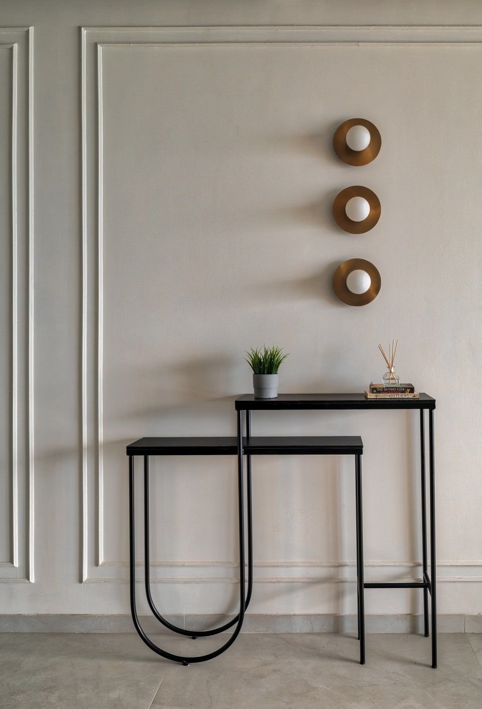 Crafted with slender black metal frames and smooth, refined tops, these consoles bring a subtle architectural presence to any space. Their open design creates a sense of lightness, making them ideal for entryways, living areas, or styled against statement walls. Whether used to display décor, books, or everyday essentials, they offer both function and refined visual balance.