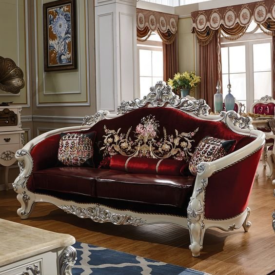 Introduce timeless elegance to your living space with the Royal Victorian Embroidered Velvet Sofa, a masterpiece of classical craftsmanship and regal aesthetics. This statement sofa features rich deep-red velvet upholstery paired with intricate gold and floral embroidery across the backrest, creating a majestic focal point for any luxury interior.