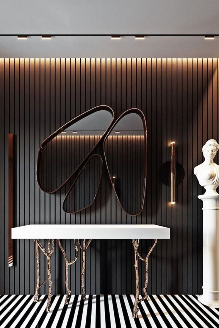 Resting atop this striking base is a thick, pristine white surface. Its clean lines and minimalist design provide a perfect counterpoint to the free-flowing legs, creating a dramatic visual tension that is both modern and timeless. This console is an ideal stage for displaying curated art, a statement vase, or your favorite collectibles, making it a perfect focal point for a grand entryway or a luxurious living area.